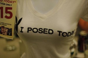 As a reward for showing the world her smooth kitty today, she’s won a Playboy t-shirt