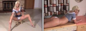 Today we’ve got a blonde cheerleader video for you. She’s a busty blonde pro cheerleader who has proudly got her busty cleavage on show for you today. She clearly loves showing off her cheer moves for you in a skimpy outfit. If you were a player in a team she was cheering for would she make you play better or distract you from your game? To watch now click on her image below to open her video on our website.