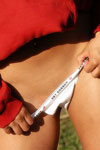 white panties, so she's making the most of it with a tease