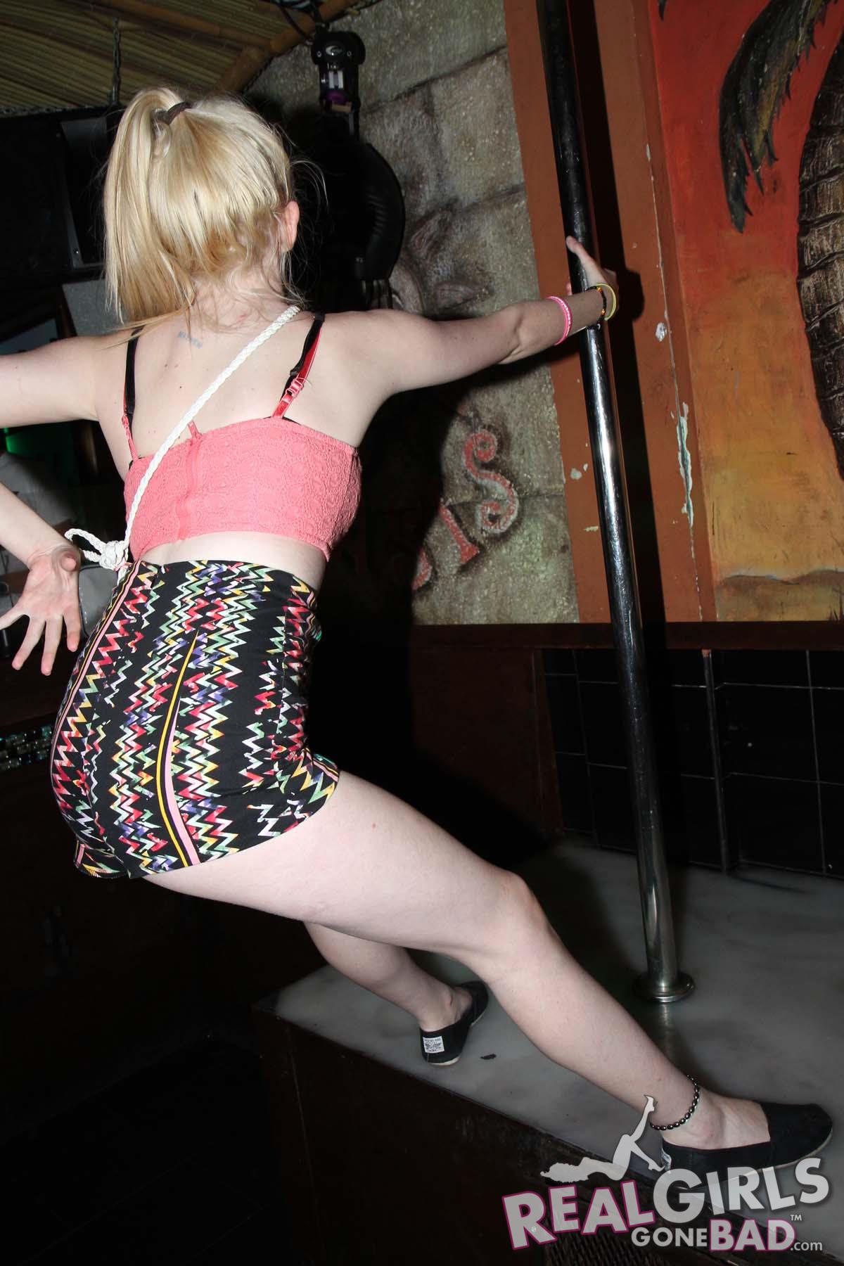 Blonde party girls in a bardDrunk UK girl dancingGirls strips down to her pantiesBlonde girl shows her underwear