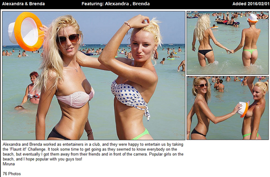 Have you heard of the legendary UGotItFlauntIt camera crew? They go around on sunny beaches offering cash to cute ladies in bikinis and challenging them to strip on the beach. Many of the girls will agree, especially as they are on vacation so want do something a bit different, showing off to their friends and also earning some useful holiday cash at the same time. The UGotItFlauntIt team are doing a service to mankind so you may quite fancy checking out their official website which the images below are linked to if you click on any of them, over there you have the option to join and see the most naughty and revealing of all of their photos and videos, there’s a lot in there as they’ve been doing this for quite some years now. Also if you do sign up you’ll be funding their important work around beaches on Europe, giving our dares and challenges to hot girls who no doubt most of you would quite like to see having some daring fun.
