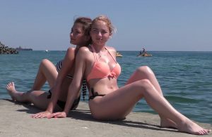 After a brief chat and a peek at some sample work on the photographers’ phones, the women agreed. The shoot was relaxed and fun: walking along the shoreline, splashing in the waves, the girls were dared to get topless, putting on handbras, and even staging a mock tug-of-war with their bikini tops. The photographers kept the mood upbeat, encouraging the friends to be playful, and soon everyone was laughing like it was just another part of their beach day.