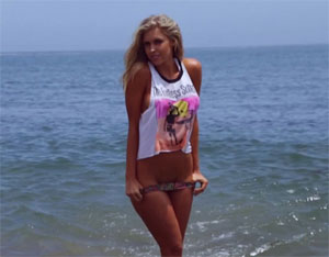 The beautiful blonde Monster Energy girl Kayla Rae Reid is back again already, this time the gorgeous babe is going to strip fully naked on the beach for Playboy and then do a spot of surfing, does that sound like fun or what? This stunning Playmate is clearly an only for Playboy kind of girl, you’re definitely not going to find her taking down her bikini bottoms and revealing all for anyone else. To enjoy the screen caps we’ve taken from her video on WeHatePorn simply click on one of her two images below.